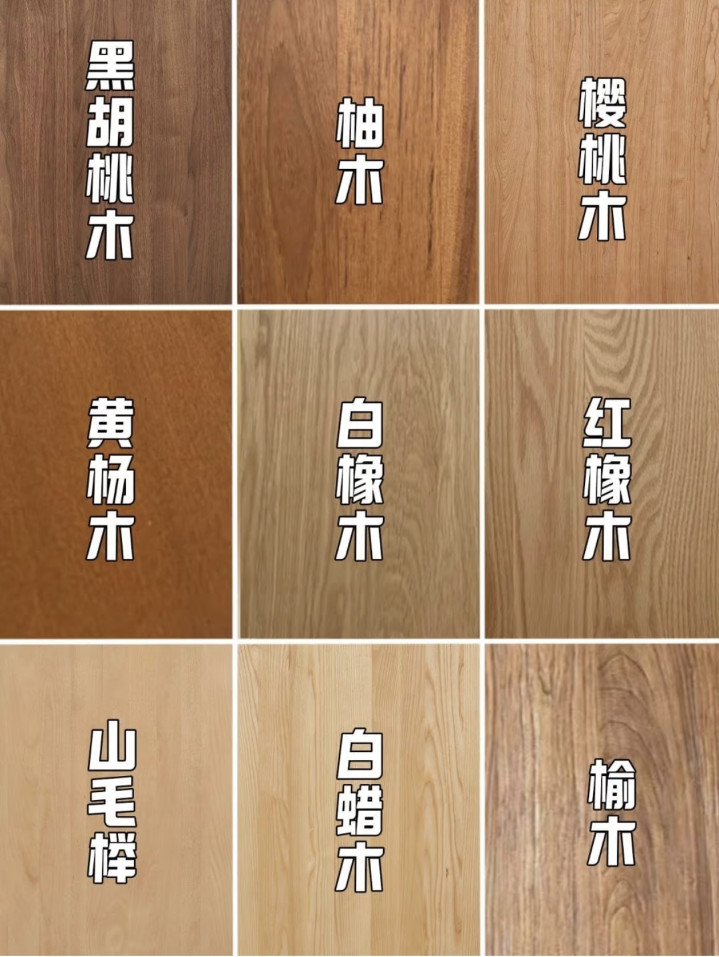 这些木材外观颜色都差异明显,根据自家风格、预算去匹配。
