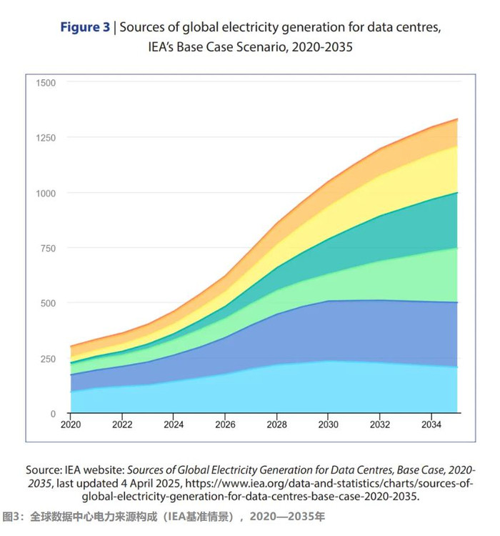 无论未来出现哪种需求情景,要满足人工智能当前与未来的用电需求,关键还是在于建立并持续优化“可靠的能源组合”,同时通过合适的购电/供电安排锁定电量与电价。保守估计,为数据中心供电的全球发电总量将从2024年的约460太瓦时增至2030年的1000太瓦时以上,并在2035年达到约1300太瓦时。其中约一半来自可再生能源,余下的部分则由天然气与煤电进行补充;储能则承担“缓冲”角色,平抑可再生能源的发电波动。因此,从成本与可获得性方面进行综合考量,“天然气+可再生能源”成为各国的优先选项。